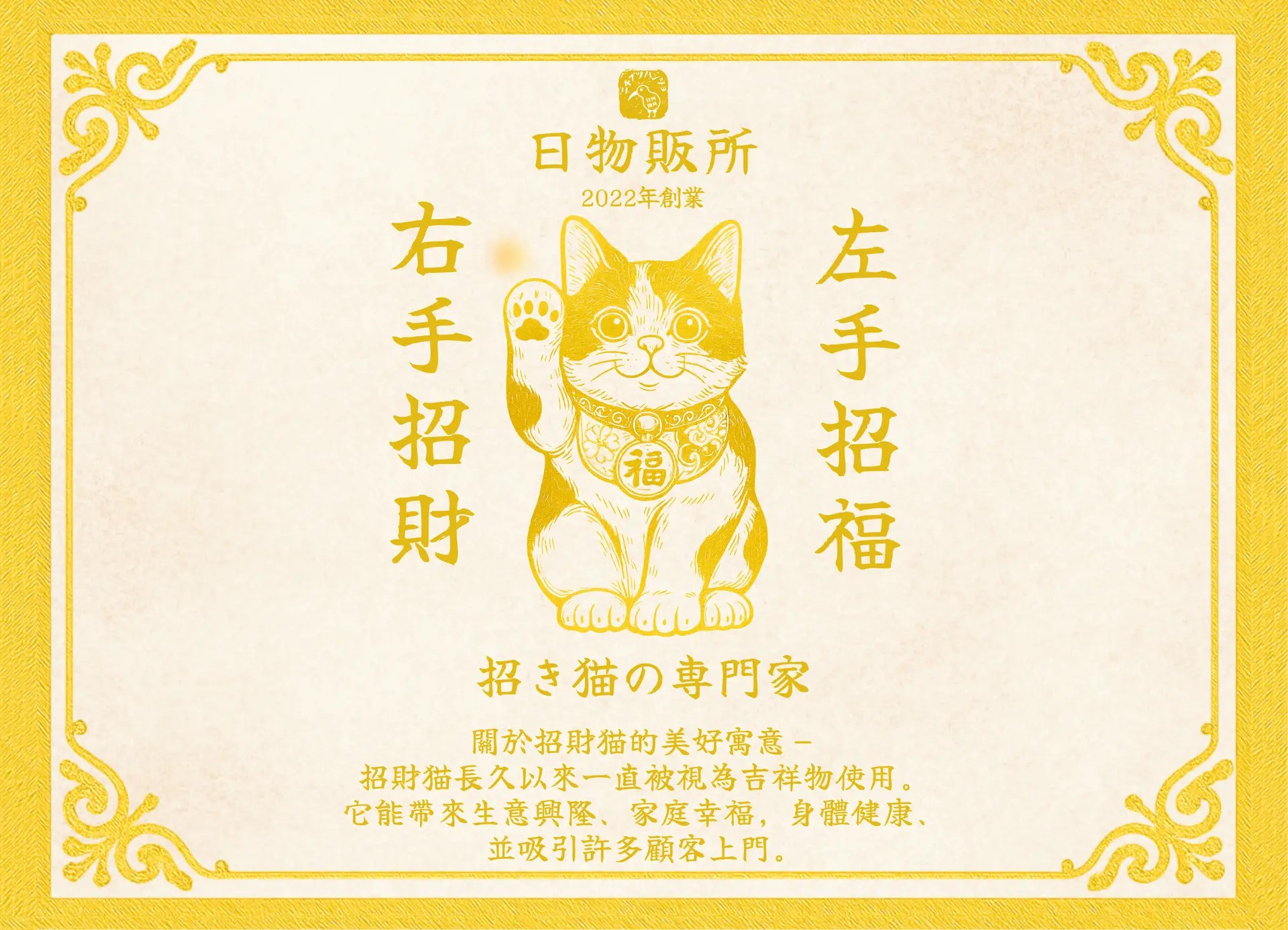 好運可以不斷疊加! 不少顧客親身體驗: 買了一隻招財貓,財運來了, 買了第二隻,機會更旺! 日物販所的招財貓, 見證無數回購的信任與奇蹟, 讓「好運」成為你的日常。